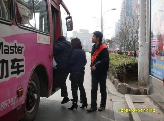 青年志愿者协会与徐州市公交公司共同举办了“文明乘车日”活动,主题为“文明乘车,微笑导乘”。