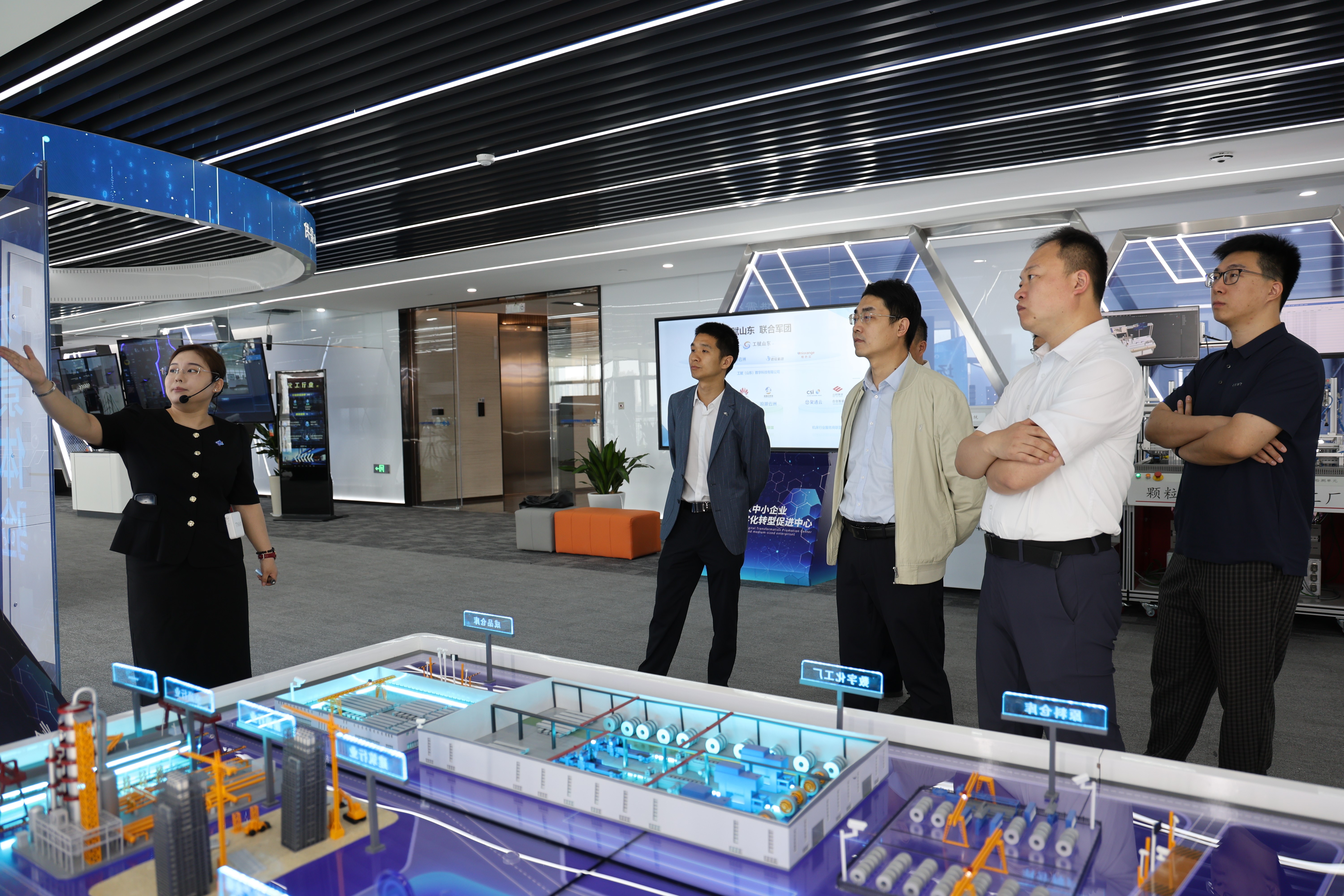 座谈会后,研究所教师实地考察了国家中小企业数字化转型促进中心,详细了解了数促中心建设背景、核心功能和运营成果,并直观感受了工业企业在智能安全管理和设备物联网领域的成功应用案例。此外,研究所教师还参观了浪潮集团展厅,了解了云计算、大数据、人工智能等技术在智慧城市安全体系建设中的标杆案例。