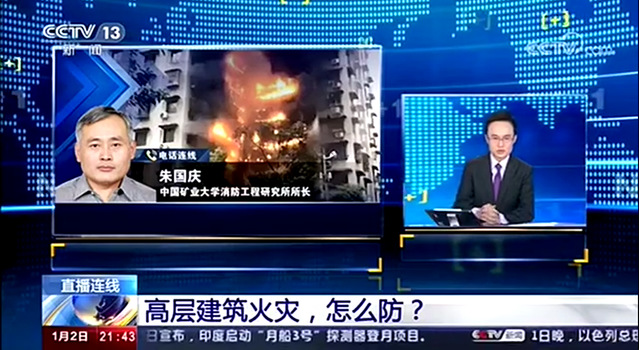 朱国庆教授运用丰富的专业技术知识,依据《消防法》和有关管理规定,对这些问题进行了详细解读。他解释了高层建筑竖向火灾蔓延迅速的原因,指出高层民用建筑消防设计与消防设施仍有一些科学问题待进一步研究,并提出要加强消防安全管理和消防设施维护保养,避免消防通道非法占用,杜绝建筑内可燃物乱搭乱堆等不安全行为。朱国庆教授的解读既专业严谨,又通俗易懂,很好地回应了广大社会民众所关注的热点问题,起到了释疑解惑、服务大众的专家解读作用,受到了央视《新闻1+1》栏目编辑的好评,节目播出后也引起了广泛和良好的社会影响。