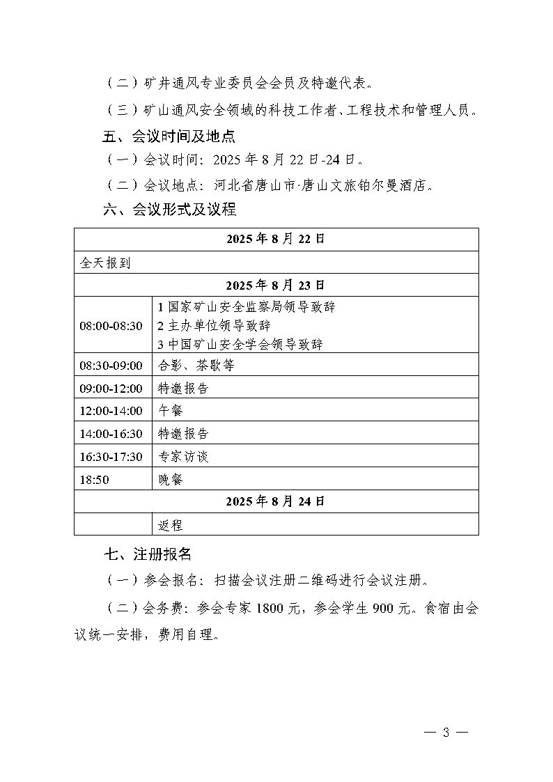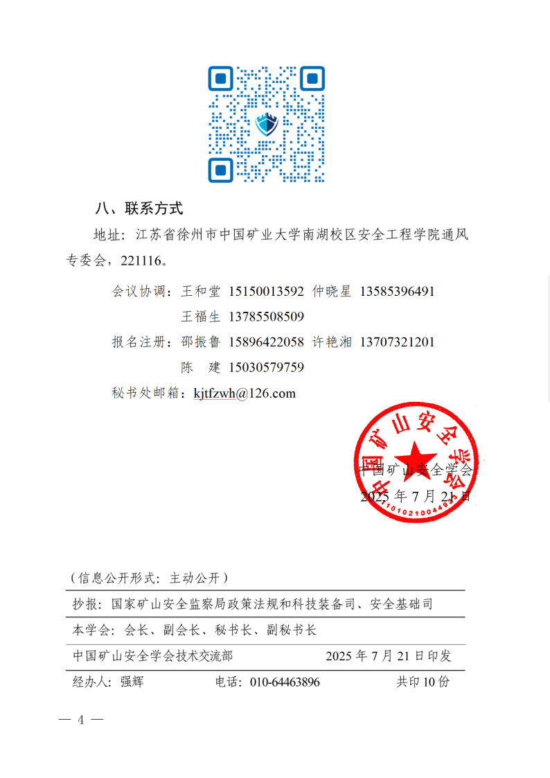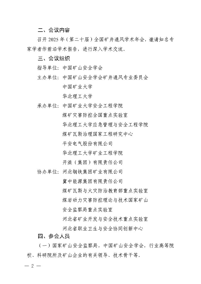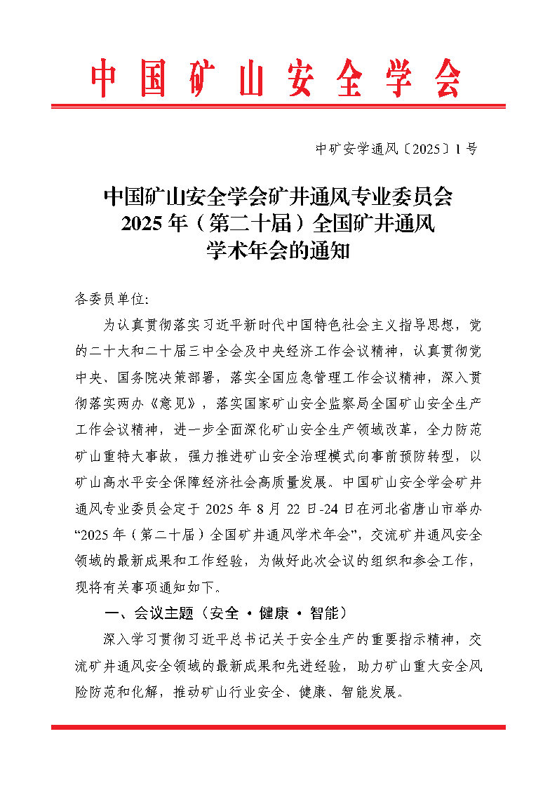 中国矿山安全学会矿井通风专业委员会2025 年(第二十届)全国矿井通风学术年会的通知