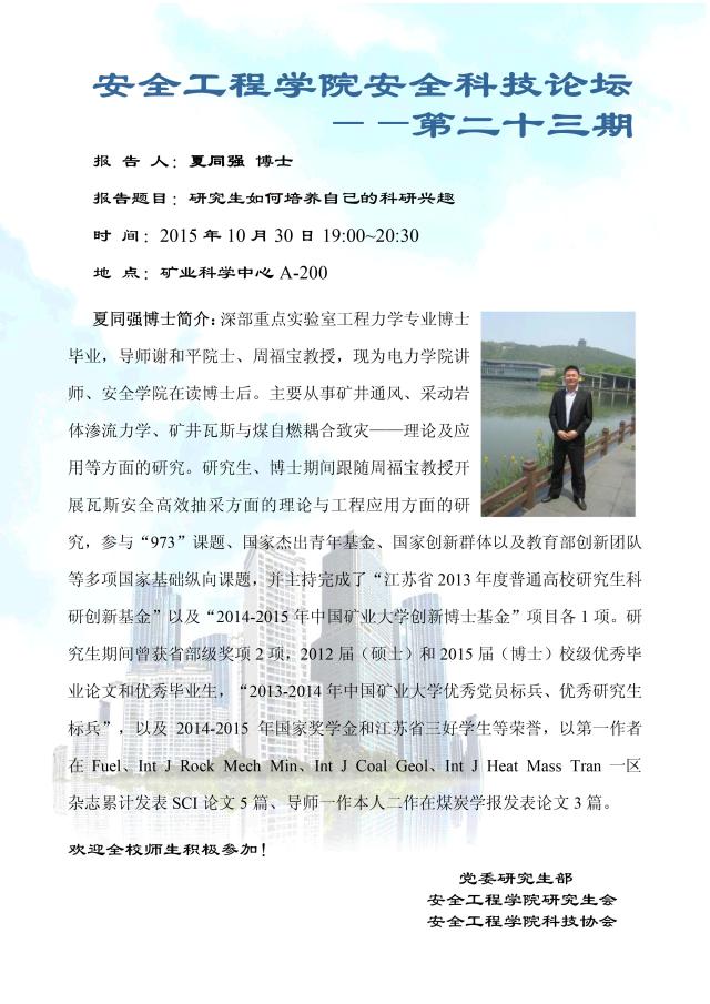 第二十三期安全科技论坛——研究生如何培养自己的科研兴趣