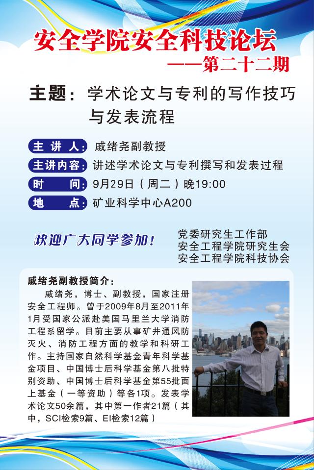 第二十二期安全科技论坛——学术论文与专利的写作技巧与发表过程
