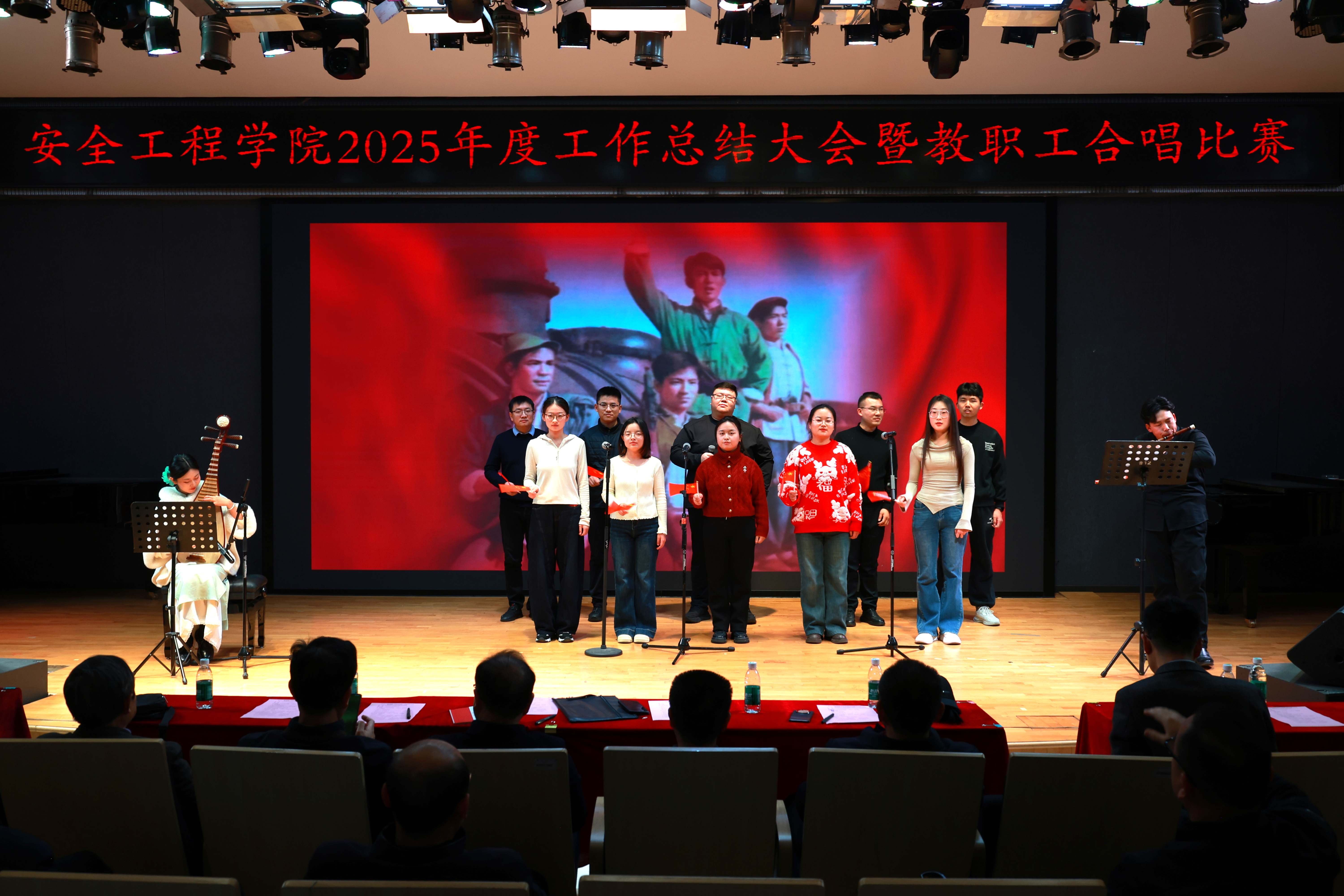 工作总结大会后,教职工合唱比赛在热烈的掌声中拉开帷幕。各研究所与机关单位依次登台献唱,用歌声表达爱国情怀、展现精神风貌。通风防灭火与地下空间安全研究所合唱队深情演绎《我的中国心》,唱出了对祖国的赤子之情;消防与公共安全研究所合唱队高歌《团结就是力量》,气势昂扬;学院党政机关合唱队带来的《敬业阵线联盟》,旋律活泼,展现了管理服务队伍的活力;全重与实验中心合唱队倾情献唱《明天会更好》,以悠扬旋律传递对学院创新发展和祖国繁荣昌盛的真挚祝福。职业健康与安全防护研究所合唱队带来《我爱你中国》,歌声深情饱满,抒发了深厚的家国情怀;工业安全与应急装备研究所合唱队演绎《明天会更好》,唱响对安全生产事业进步与国家未来发展的坚定信心;安全监测与应急管理研究所合唱队带来歌曲《明天会更好》,以铿锵节奏传递出扎根专业、奉献国家的坚定信念;瓦斯防控与双碳技术研究所合唱队深情演唱《歌唱祖国》,用激昂的旋律抒发科研报国、服务发展的坚定情怀。