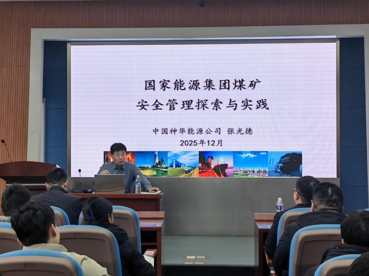 张光德教授级高工从国家能源集团简介、安全管理概况和风险预控管理体现建设情况等方面,向大家讲解了国家能源集团实施风险预控管理、建立安全生产长效机制的先进做法和经验,并重点介绍了神华集团“树立一个理念”“构建一套体系”“探索一条途径”“打造一支队伍”“培育一种文化”的“五个一”安全生产经验。随后,他又对国家能源集团2023年以来安全生产管理体系建设新提升方面的创新做了详细介绍。报告会期间,张光德与参会师生就科学研究、学习课程和职业规划等相关内容进行了交流互动,师生们表示获益匪浅。